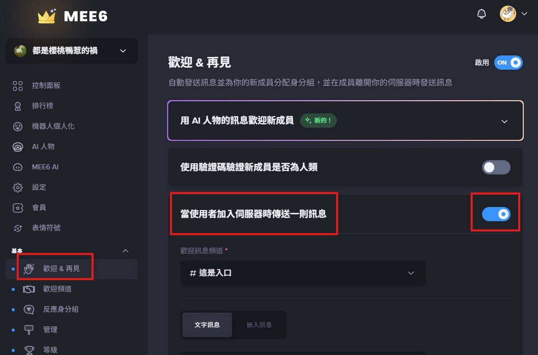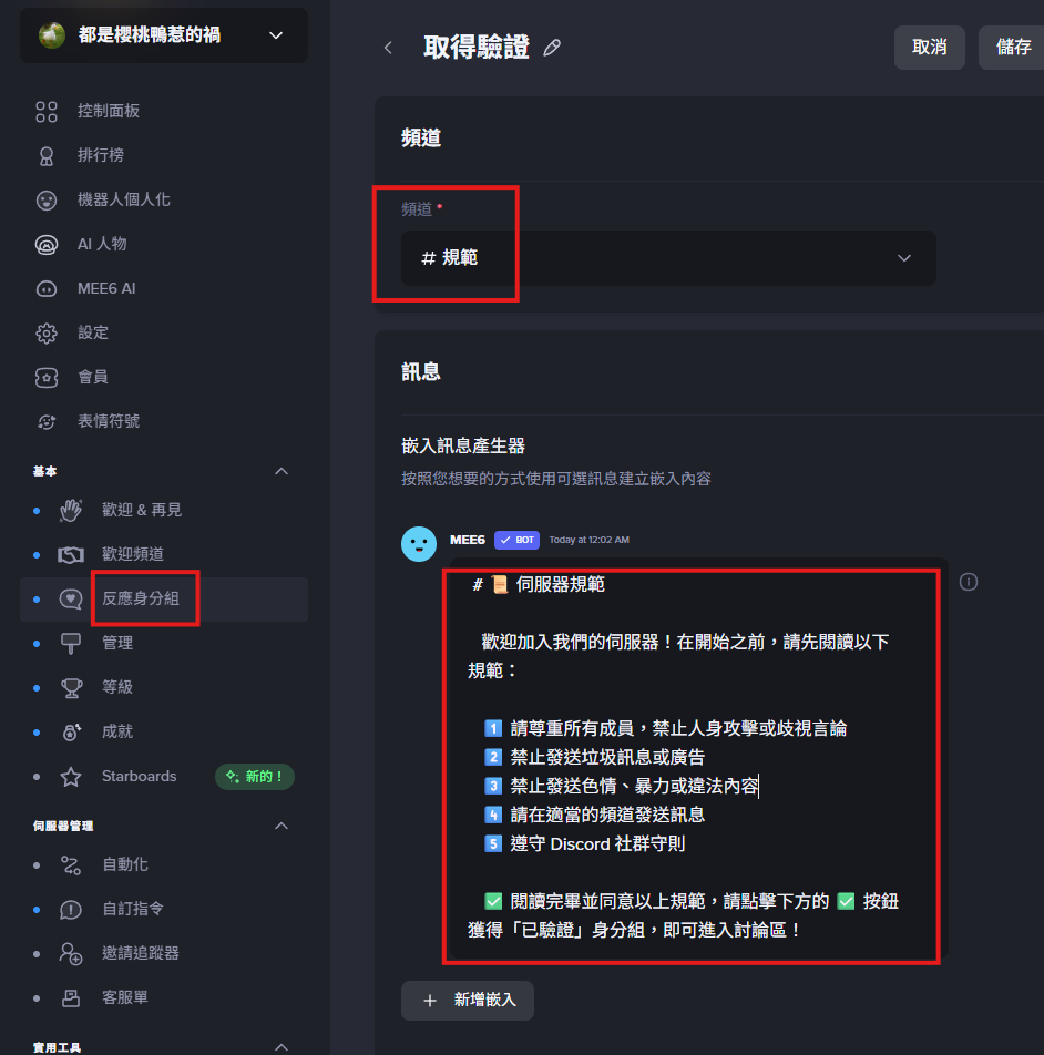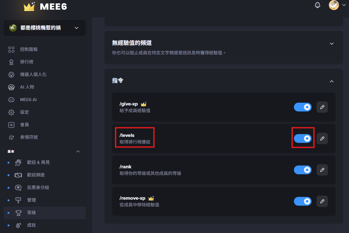 - MEE6 Bot(需要加入你的 Discord 伺服器)