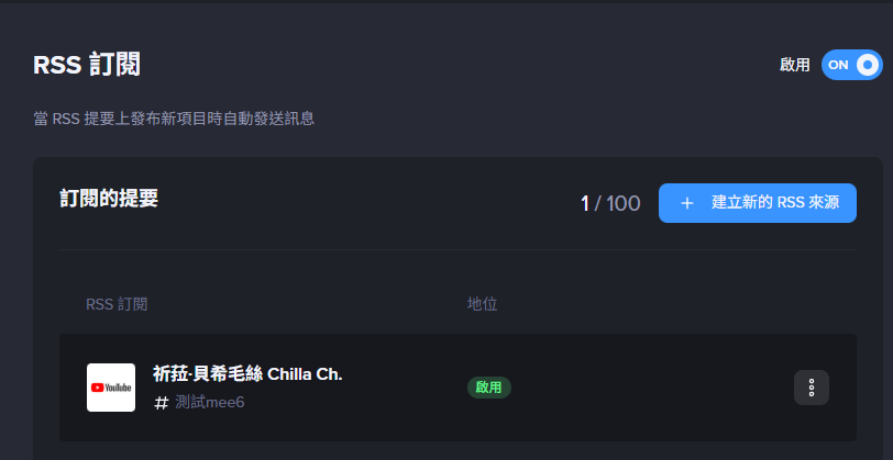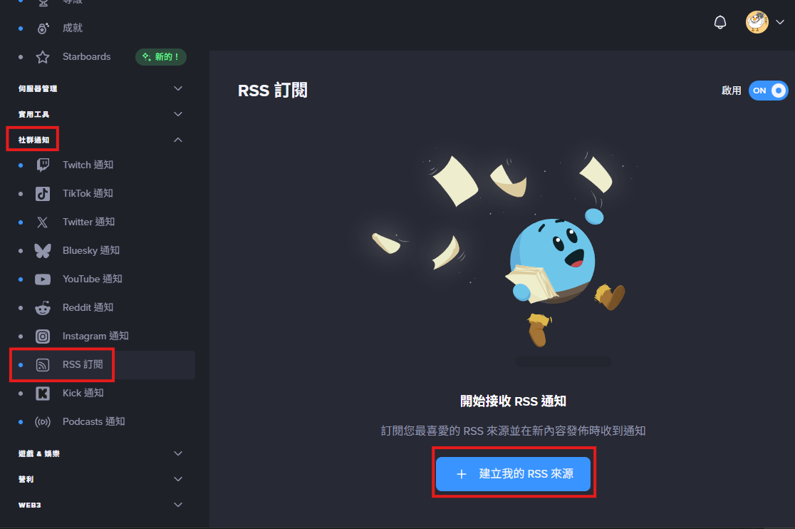 - 找到 RSS 訂閱 並點擊啟用,建立我的 RSS 來源