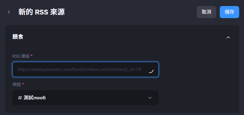 - 在 RSS URL 欄位貼上剛才生成的 RSS 連結